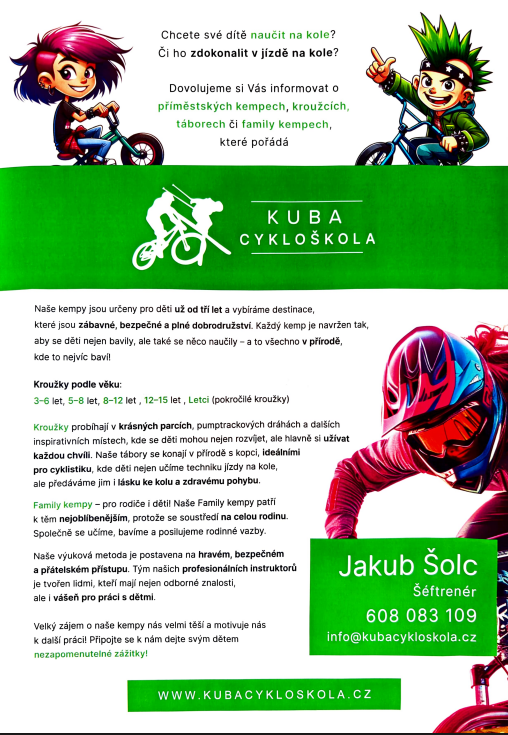Ve školním roce 2025/2026 jsme za účelem nabídky volnočasových aktivit pro naše děti připravili spolupráci na následujících kroužcích: